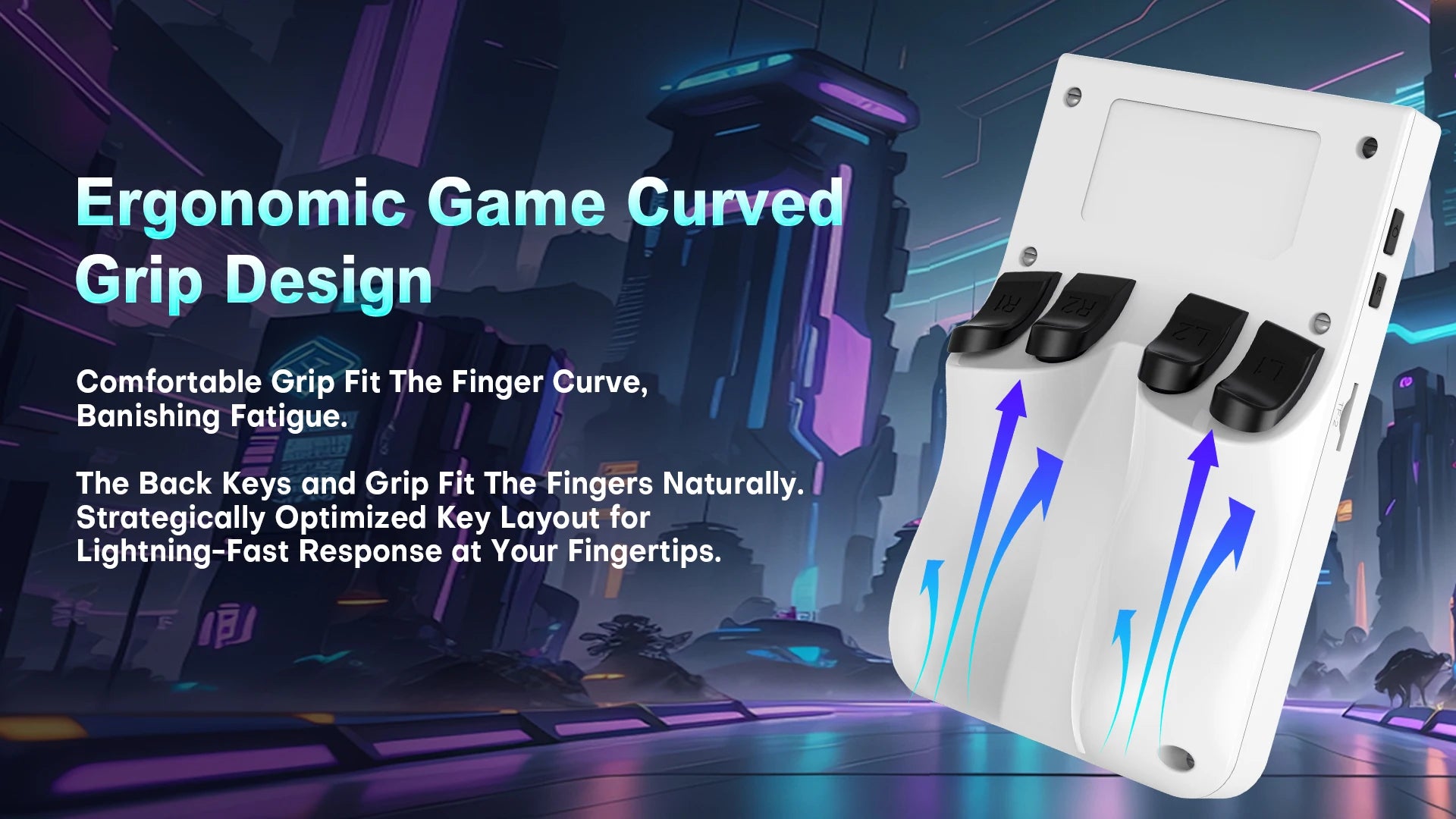 * The back buttons and grips fit the fingers naturally, comfortable grip, and relieve finger fatigue.