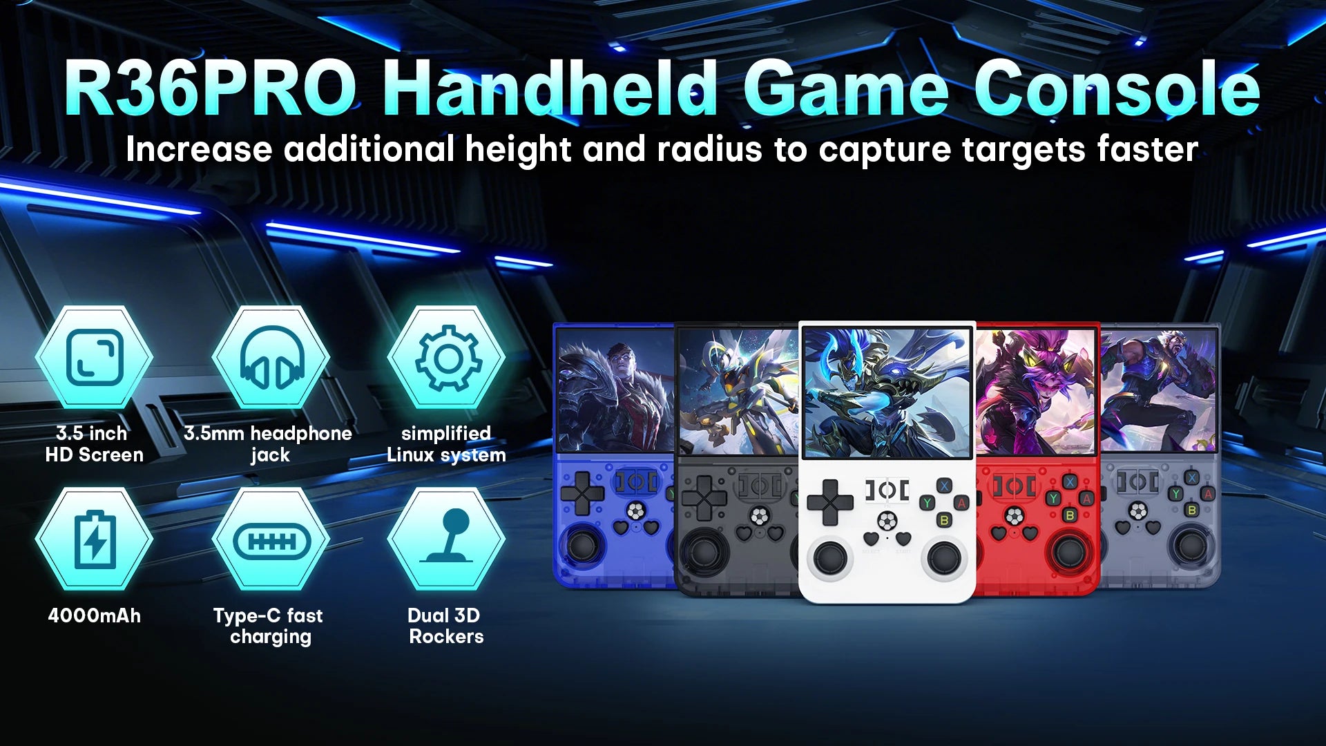 AISLPC R36PRO Retro Handheld: 3.5" IPS, 64/128GB/30000+ Classics Game Linux OS Crisp HD Visuals Expandable 256GB TF Card Support