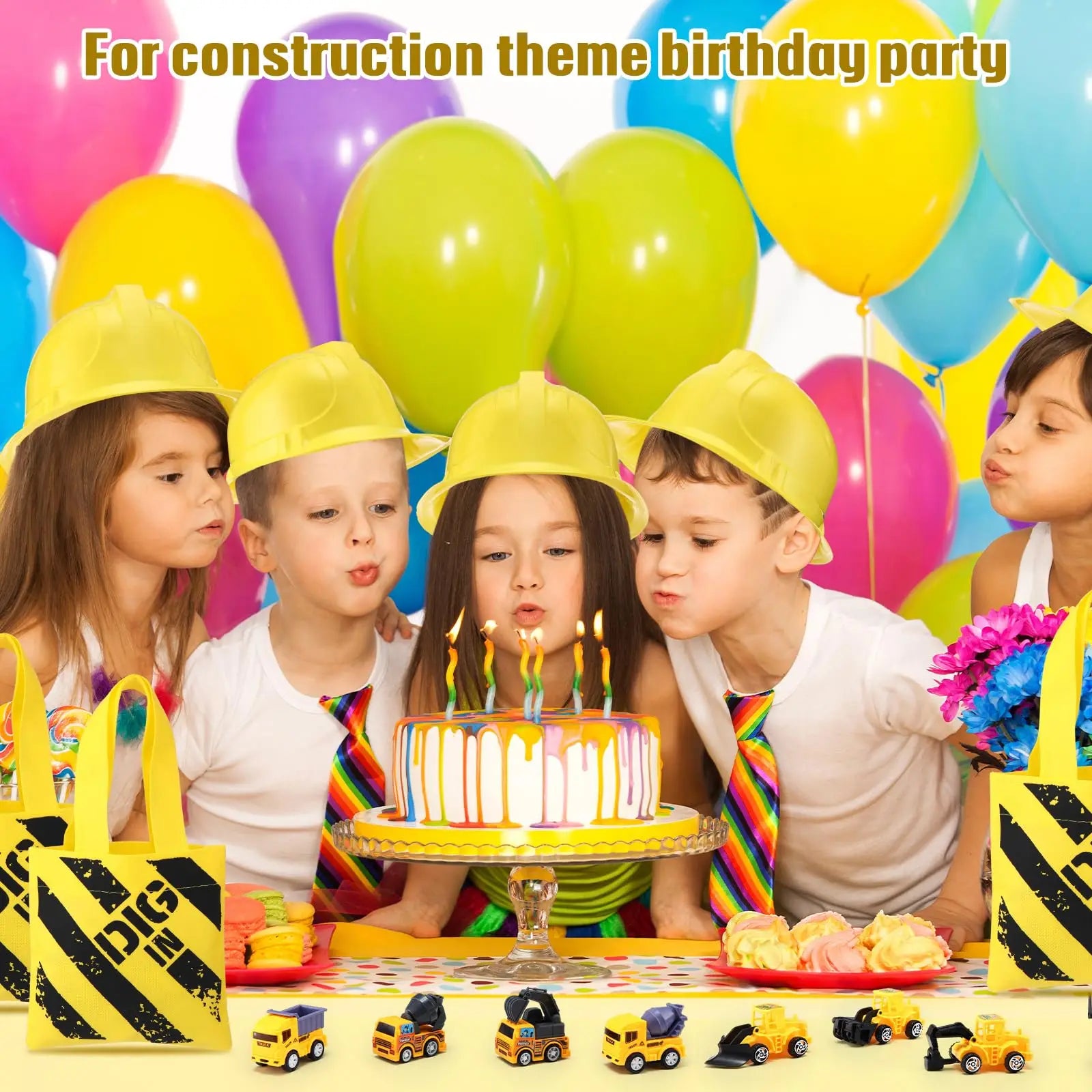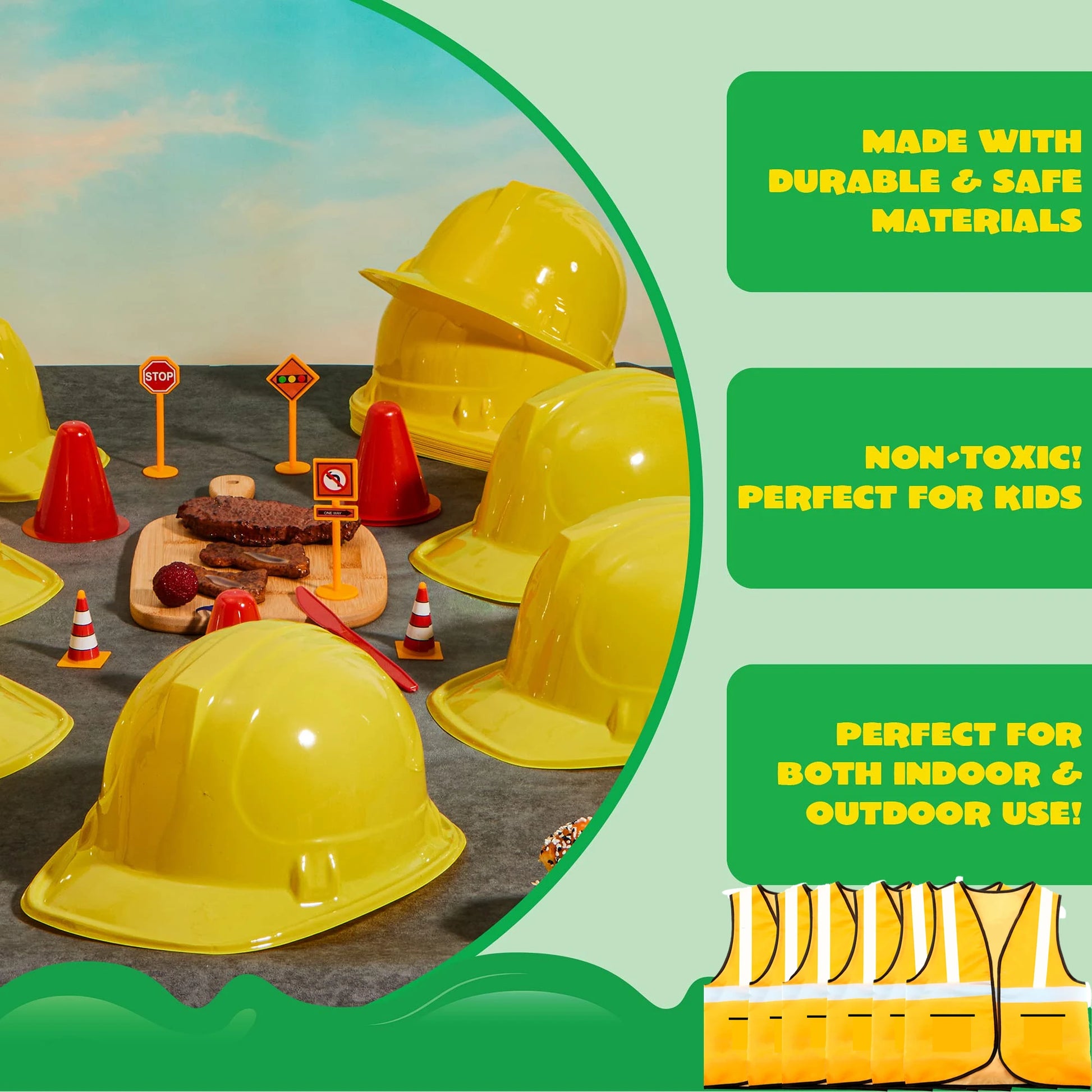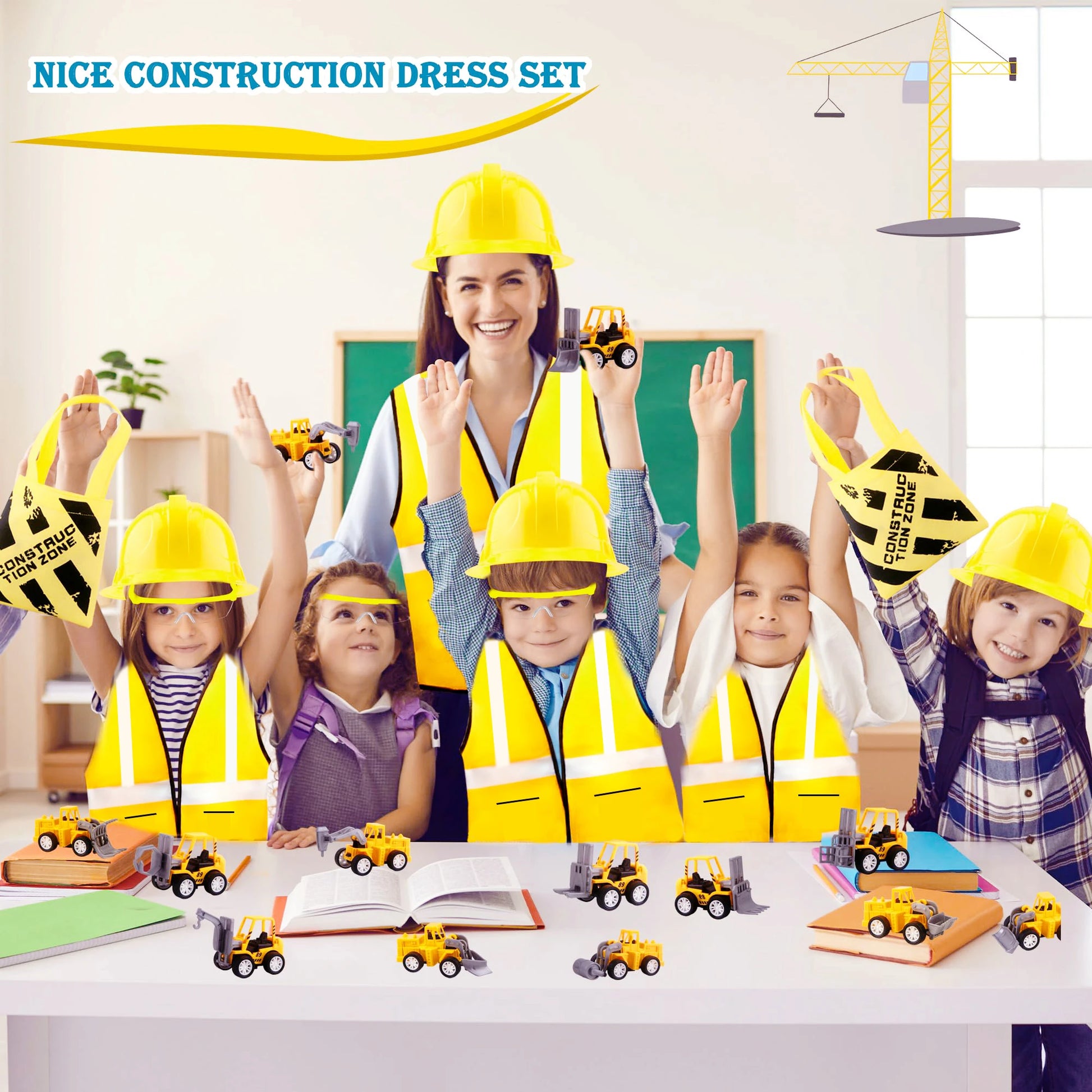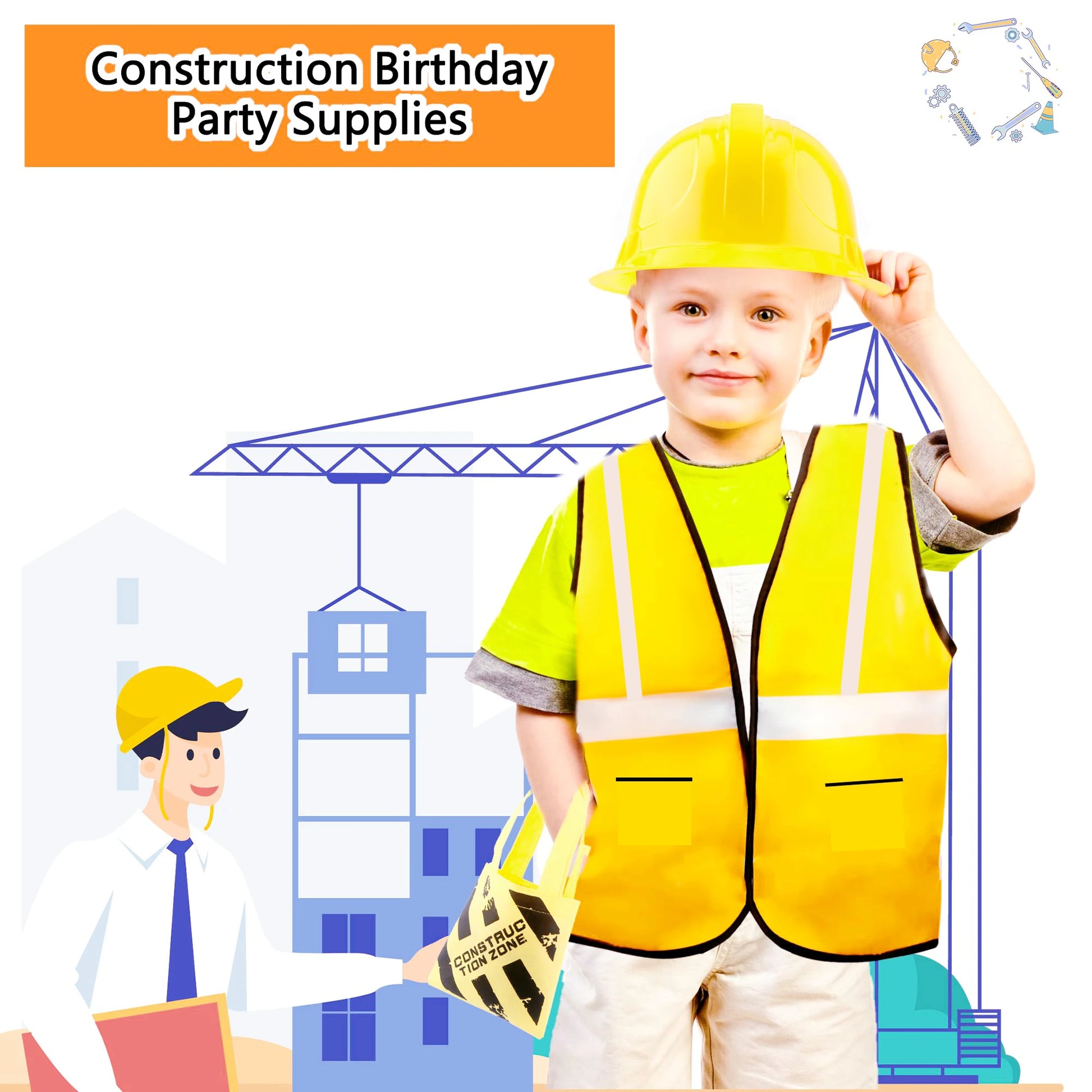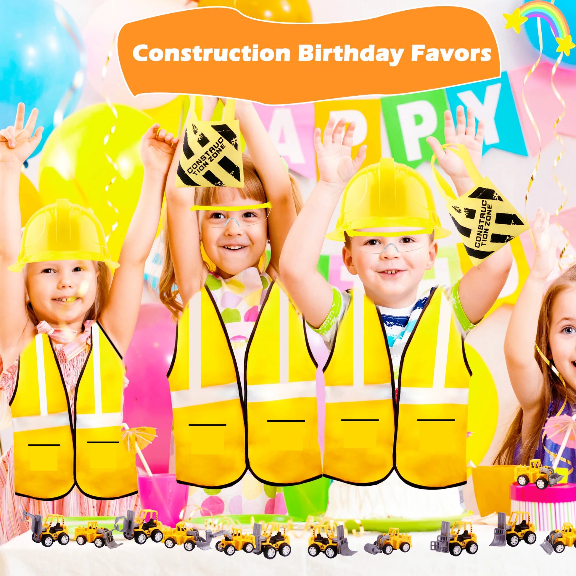 Kids Construction Party Favors for Boys Construction Vest Hat toys Worker Costumes Dress Up Construction Birthday Party Supplies